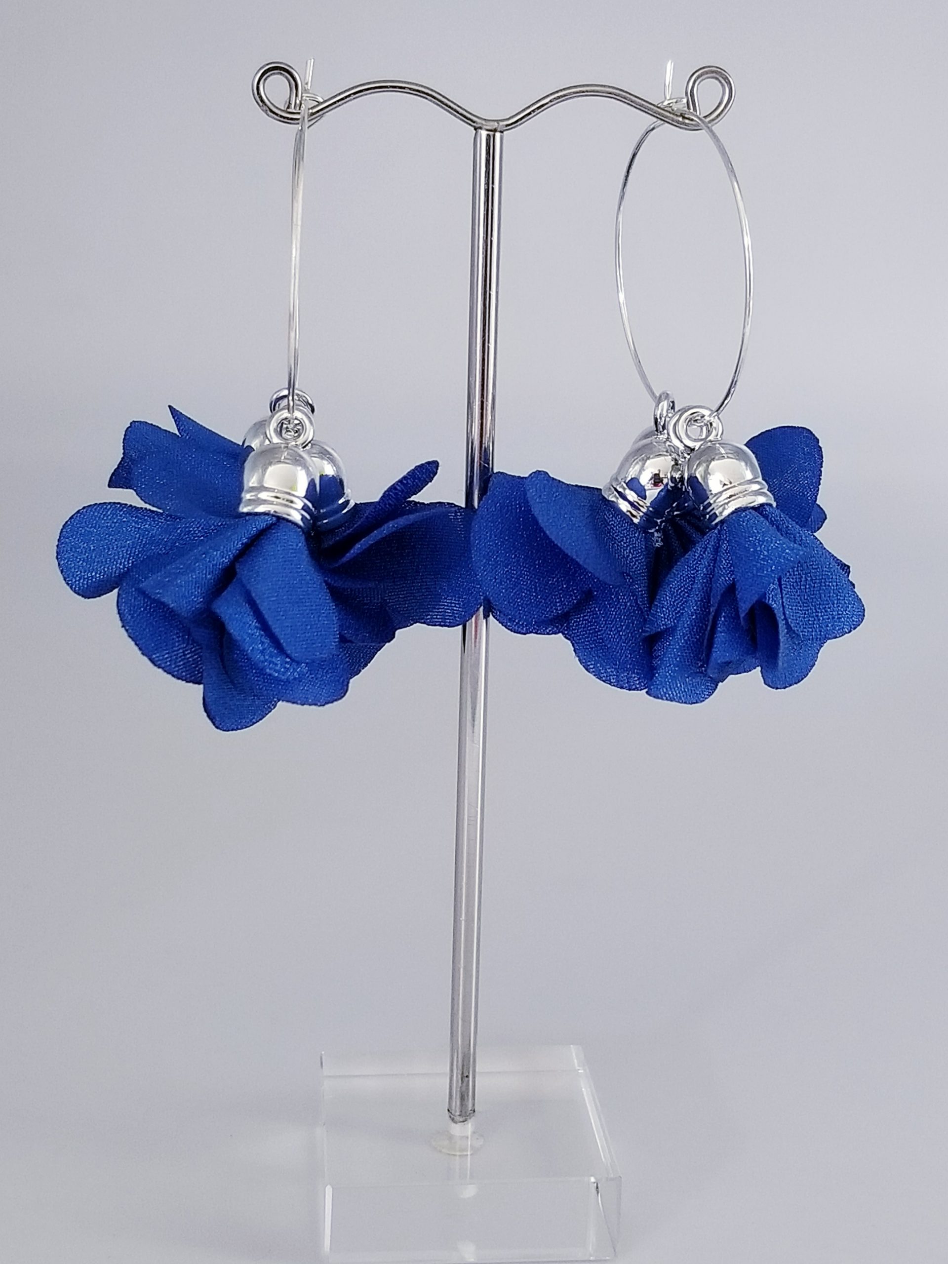 Boucles d’oreilles créoles et froufrous bleu électrique